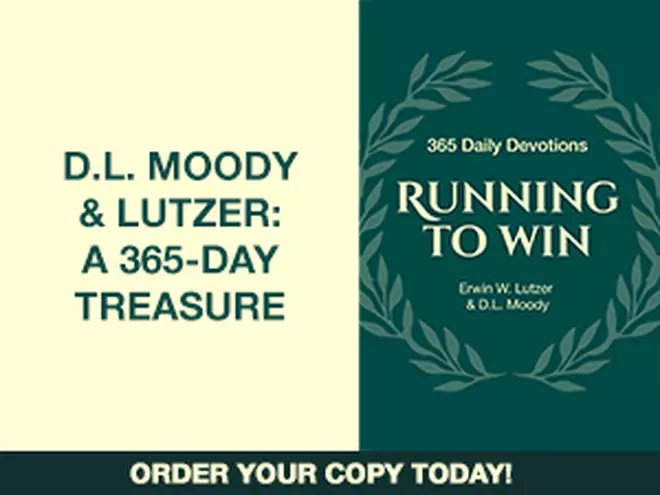Experience a year of devotions designed to draw you closer to Christ and live with lasting purpose. D.L. Moody and Erwin W. Lutzer speak with unwavering clarity so you can fix your eyes on Jesus. Let God’s Word inspire you daily to run all the way to the finish line! Click below to receive this hardback, 365-day devotional for a gift of any amount or call us at 1.800.215.5001.